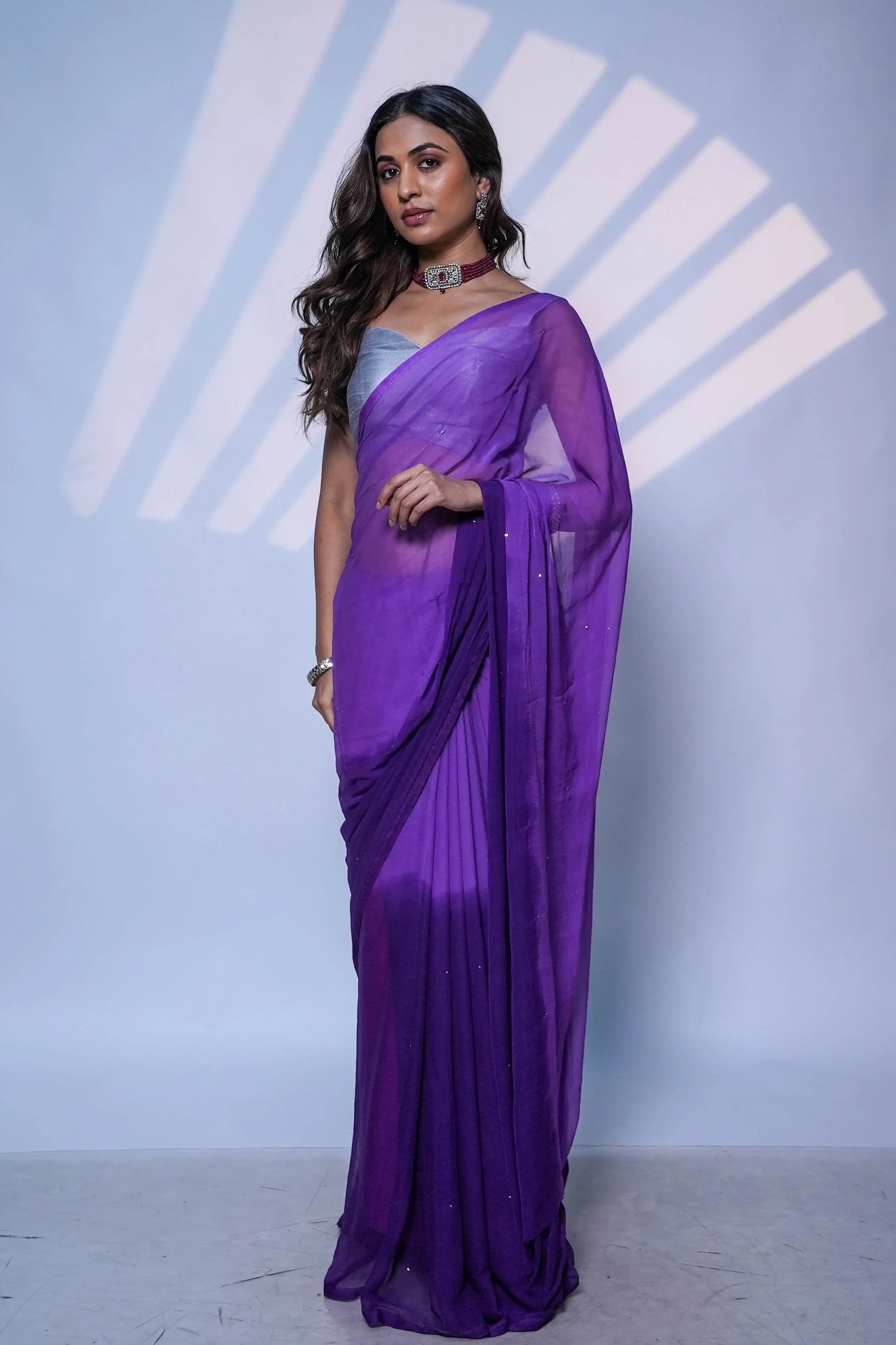 Colour: violet-magenta hue with Mukaish work
